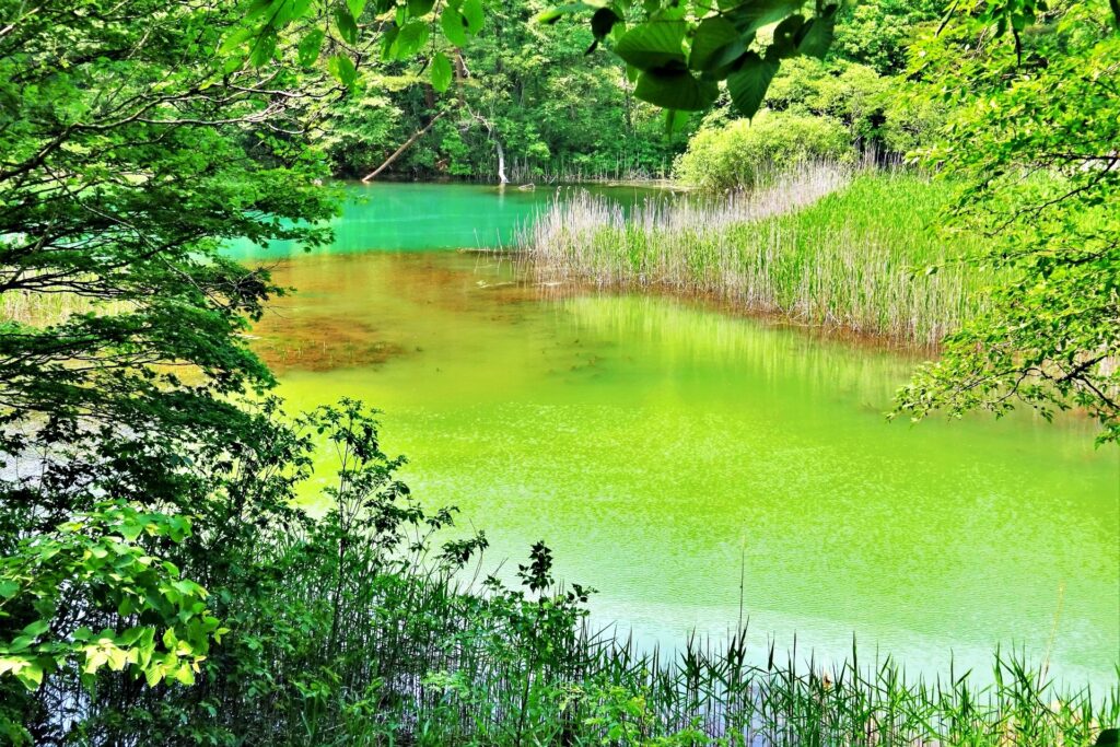 เดินเลยมาอีกนิด บึงน้ำถัดไปที่คุณสามารถเห็นได้ก็คือ Tatsunuma หรือบึงน้ำมังกร โดยบึงนี้จะมีจุดเด่นที่สีฟ้าอมเขียวที่เด่นชัด ล้อมรอบด้วยต้นไม้ที่ปกคลุมเป็นจำนวนมาก ซึ่งถ้าคุณเดินมาตามเส้นทางเดิมชมธรรมชาติแห่งนี้ ด้วยมุมมองของเส้นทาง คุณจะสามารถมองเห็นบึงน้ำได้จากช่องเล็กๆ ที่ทะลุผ่านต้นไม้เท่านั้น หรือถ้ายิ่งมาในช่วงฤดูร้อนที่ใบไม้เขียวชอุ่มละก็ยิ่งมองเห็นได้ยากเข้าไปใหญ่ คนญี่ปุ่นบางคนจึงเรียกบึงน้ำแห่งนี้ด้วยชื่อเล่นว่าบึงน้ำมายา ลึกลับสมชื่อบึงน้ำมังกรจริงๆ